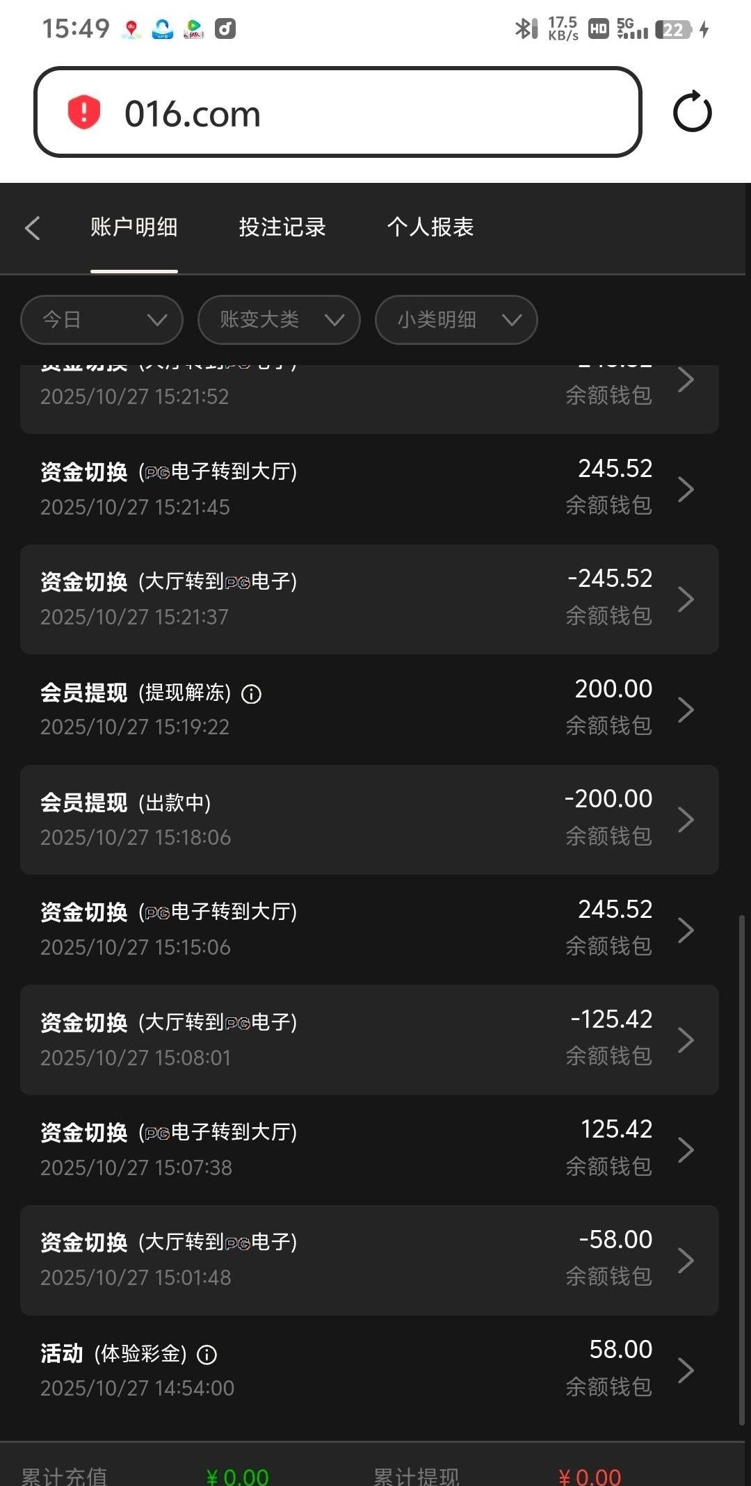 出款情况:自测(