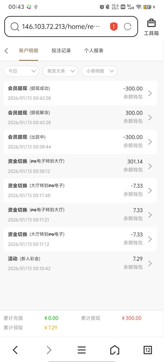 有号的去看看 没有接到电话已经领过三次了(他这个回归活动过一个月左右会刷新一次应该是 这个号一分钱没有充值过。以前有一个号也是领了七块打出来100 当时要充值50才能解锁提现,不过这个号分逼没充七块麻将上300 提现2分钟到的,现在好像特邀彩金不需要充值就能提现了。反正这个台子我两个号领七块打出来都提现成功了 。反正现在不需要充值就能提现 大家也不用怕被黑 反正无成本