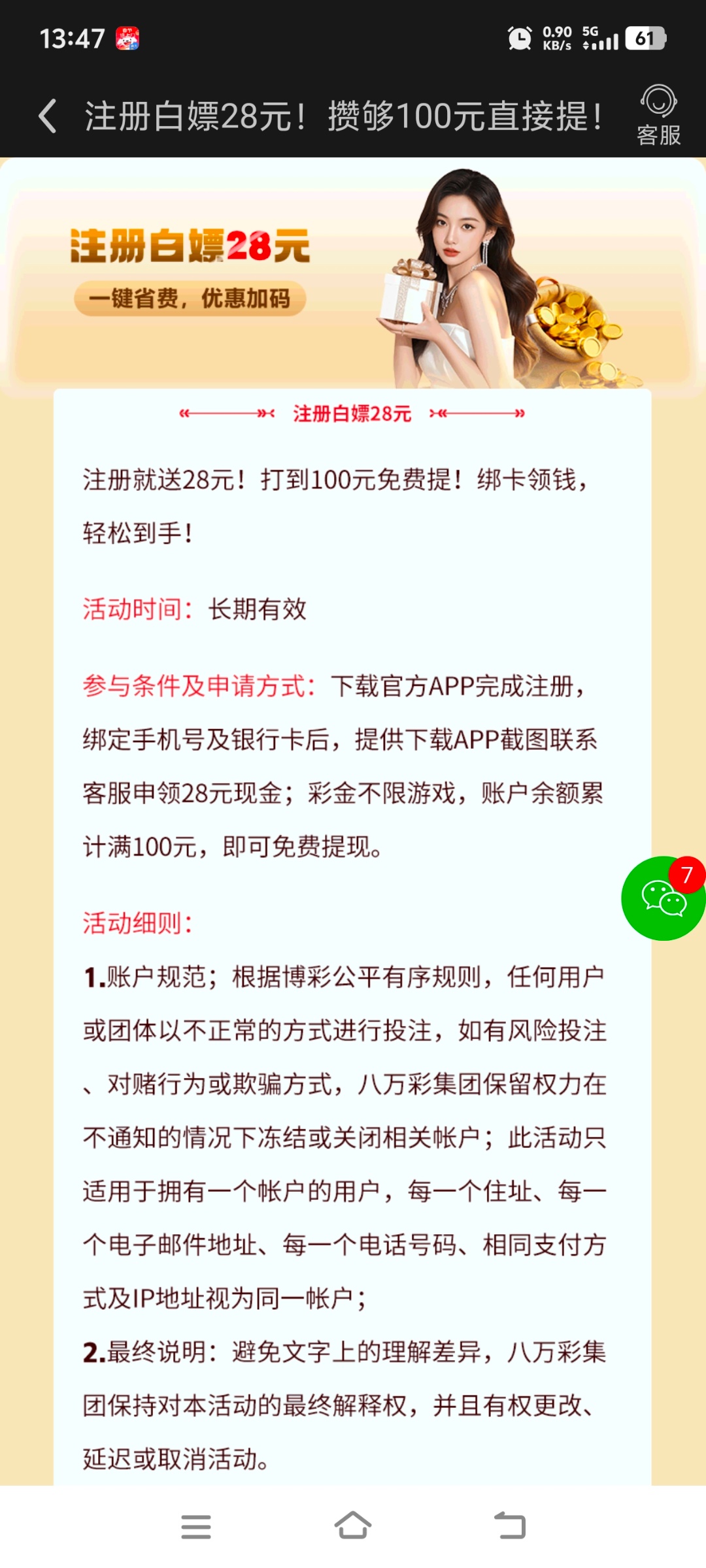 下载APP注册绑卡绑手机号联系在线客服申请28没有游戏限制100就可以提我没打出来。